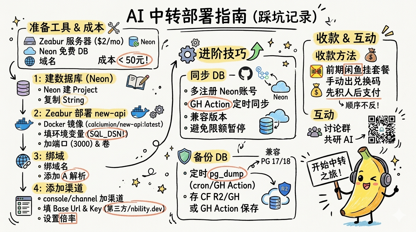手把手搭 AI 中转:Zeabur + Neon,50 块以内跑通